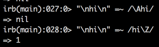 Wait, did I mention another reason why Regexps in Ruby are horribly designed? There’s \A meaning the beginning and there’s \Z meaning the ending… or a new line. You’re supposed to know it. Because only \z means the ending. But most people don’t care the last \n.